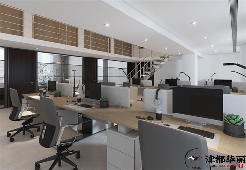 今天分享的是銀川辦公樓裝修設計案例, 設計師以滿足建構(gòu)要求的空間為基礎,提取建筑的折線元素,并利用相對自由的雕塑性來建造一個能夠表達意志的辦公空間,同時遵循空間邏輯和規(guī)則。極簡純粹,溫潤質(zhì)樸的自然氣質(zhì),使空間具有沉穩(wěn)低奢的格調(diào),呈現(xiàn)一種平衡的寧靜與平穩(wěn),給人一種堅實而厚重的力量感。設計師通過深淺色調(diào)的相互搭配,打造出感官的層次感,整體空間顯得更加的沉穩(wěn)大氣,凸顯出職場精英的利落感,也給訪客留下值得信賴的印象。辦公室空間是集體辦公空間,以現(xiàn)代、簡約風格為主,選擇精致、簡潔而細膩的木元素辦公桌搭配灰白系辦公椅做空間軟裝設計。干凈清爽的配色,能讓員工很快切換到工作模式。