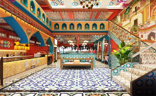 今天分享的是銀川金巴依餐廳設(shè)計裝修效果圖鑒賞。看到這樣的效果圖,您是否有一種置身于絲綢之路的繁華夢境的感覺,餐廳的每一處設(shè)計細(xì)節(jié)都透露著設(shè)計師的匠心獨(dú)運(yùn)。主案設(shè)計師在保留新疆文化元素的同時,更融入了現(xiàn)代大氣的風(fēng)格,使得餐廳美觀又大氣。該餐廳的設(shè)計色彩比較豐富,裝飾繁復(fù),充滿少數(shù)民族元素。餐廳內(nèi)運(yùn)用了大量的繁花綠植進(jìn)行點(diǎn)綴,還有許多具有新疆特色的裝飾品,如沙漠植物、手工掛毯等,點(diǎn)綴空間,增添自然與人文的氣息,無不展示著它的獨(dú)特魅力。這也是寧夏境內(nèi)具有新疆獨(dú)特地域特色的餐廳,敬請期待這家餐廳的落地效果吧!