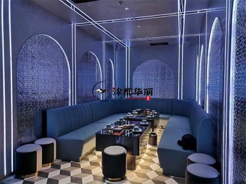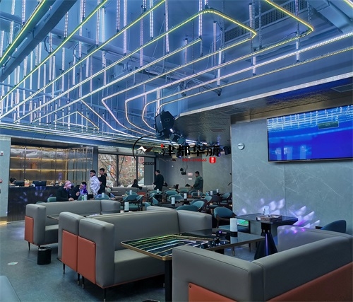 今天分享的是銀川鼎龍餐廳設(shè)計(jì)裝修項(xiàng)目實(shí)景鑒賞,該項(xiàng)目以“未來(lái)感與時(shí)尚感深度融合”為設(shè)計(jì)核心,致力于打造一個(gè)兼具餐飲與娛樂(lè)功能的沉浸式空間。在視覺(jué)設(shè)計(jì)上,空間大量運(yùn)用霓虹光源與幾何元素,例如墻面環(huán)繞的環(huán)形燈帶、立體幾何裝飾結(jié)構(gòu),并以高對(duì)比度的黑白主色調(diào)為基底,成功營(yíng)造出極具賽博朋克風(fēng)格的前衛(wèi)氛圍,精準(zhǔn)匹配年輕消費(fèi)群體對(duì)潮流社交空間的需求。功能布局上,該餐廳巧妙融合KTV包廂的休閑屬性與傳統(tǒng)餐廳的用餐功能,采用卡座與餐桌一體化的設(shè)計(jì)方案,在保障用餐便捷性的同時(shí),充分滿足消費(fèi)者的社交娛樂(lè)需求。銀川裝修公司津都華麗團(tuán)隊(duì)在本次項(xiàng)目中,深度踐行潮流沉浸式餐飲空間的設(shè)計(jì)理念。