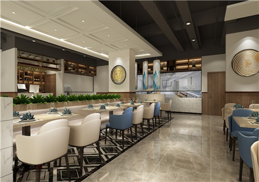 在本案涉及色彩搭配上,設計師注重整體效果,運用色彩對比,加強了視覺印象和就餐食欲效果,突出了重點展示部位,搭配相應的對比色彩。