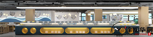 本案整體的裝修是簡約時(shí)尚、舒適自在的,門頭的設(shè)計(jì)簡單卻也突出了重點(diǎn),沒有過多復(fù)雜的裝飾和設(shè)計(jì),會讓門頭看起來更加的整潔,也會讓人更加容易記住。一進(jìn)門收銀臺的設(shè)計(jì)清新自然,給人進(jìn)門的映像是舒適和放松,在內(nèi)部空間規(guī)劃上,設(shè)計(jì)師設(shè)計(jì)的合理舒適,火鍋店就餐人數(shù)較多,人員流動很大,所以在空間布局上不論從視野和使用性上來說要都要做到寬敞舒適,首先過道的設(shè)計(jì)要寬敞便捷,其次取菜區(qū)、料汁區(qū)、水果飲料區(qū)都是分開設(shè)計(jì)的,這樣不會造成擁擠,會更加的便捷和舒適,超大的中島選菜區(qū)也給客戶選擇更多的體驗(yàn)。就餐區(qū)設(shè)計(jì)師也做了合理的劃分,用隔斷將就餐區(qū)劃分為幾個(gè)區(qū)域,這樣既可以讓空間看起來更加的整潔,也讓顧客有一定的就餐私密空間,座位分為四人座,六人座,八人座以及包間,給予客人更多就餐的選擇。完全的開放式廚房讓客戶可看清廚房操作,實(shí)現(xiàn)“鮮貨自助”的新式味覺體驗(yàn)。整體空間設(shè)計(jì)在造型上棄用復(fù)雜的各種造型,實(shí)現(xiàn)“少即是多”的設(shè)計(jì)目的,打造時(shí)尚的簡約空間。同時(shí)在色彩搭配上主要運(yùn)用干凈清爽的白色搭配自然舒適的原木裝飾打造一個(gè)現(xiàn)代時(shí)尚的就餐環(huán)境。同時(shí)明快清爽的色彩剛好呼應(yīng)了本店“干凈”“鮮貨”“新式自助”的就餐主題。