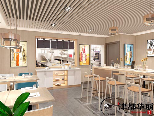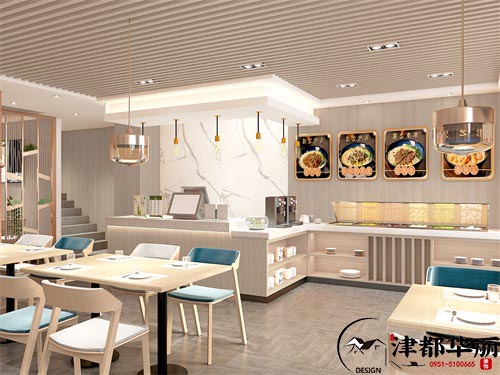 在本次案例中,設(shè)計(jì)師根據(jù)甲方的意愿,想要打造一個(gè)時(shí)尚大氣,溫馨舒適的就餐環(huán)境,一個(gè)符合都市白領(lǐng)的時(shí)尚餐廳。首先是門頭的設(shè)計(jì),橘色和白色搭配設(shè)計(jì),使門頭顯得更加時(shí)尚靚麗,能夠快速的吸引人的視線。在餐廳內(nèi)部的設(shè)計(jì)上,主要還是以簡(jiǎn)約時(shí)尚為主,其次是空間功能布局的設(shè)計(jì),因?yàn)槊骛^的人流量比較集中,中午和晚上是高峰期,所以在設(shè)計(jì)餐桌時(shí),大多以四人桌和兩人桌為主,增加餐廳的容客量。店內(nèi)的整體氛圍靜而雅致,在喧鬧的都市里,尋找一個(gè)安靜舒適、環(huán)境優(yōu)美的就餐環(huán)境,享受屬于自己的美食時(shí)光,這也是我們?cè)诜泵ι钪械囊唤z安逸的追求。