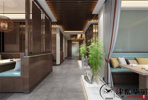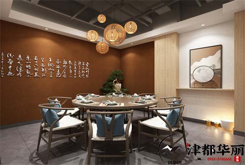 餐廳,除食物本身帶來的味蕾滿足和享受之余,就餐環(huán)境的打造,也成為當下被人們選擇的重要元素。今天給大家分享一家餐廳設計裝修案例,本次餐廳設計裝修是新中式風格。中式餐廳在環(huán)境的整體風格上追求中華文化的精髓。并充分發(fā)揮這些民俗特色,餐廳的裝飾風格、室內特色,以及家具與餐具,燈飾與工藝品,都圍繞"文化"與"民 俗"展開設計創(chuàng)意與構思。傳統(tǒng)的裝修設計古典優(yōu)雅,有韻味,中式水墨色調散發(fā)飄逸出塵的人文氣息,加以現(xiàn)代設計的大量留白,意境淡雅,氛圍舒適!對于飲食的探索,我們從未停止腳步。幾千年來,除了品味舌尖上的酸甜苦辣,對用餐的氛圍和意境的追求似乎更勝一籌。本案設計頗具現(xiàn)代特色而又不失古韻,時代氣息濃郁,不似現(xiàn)代那般單調,而又不失中式的典雅意味,時尚大方而又優(yōu)雅別致。將中式元素與現(xiàn)代時尚完美融合,于中西合璧的碰撞中,注入人文情懷,無處不在的優(yōu)雅、浪漫。一茶,一飯,一光陰。尋得舒心愜意之地,慢慢品味生活的滋味,口口入味入心,平添幾分生活情趣。擁有一個輕松舒適的餐廳氛圍,一段愜意的用餐時光,便是我們最容易滿足的小幸福。