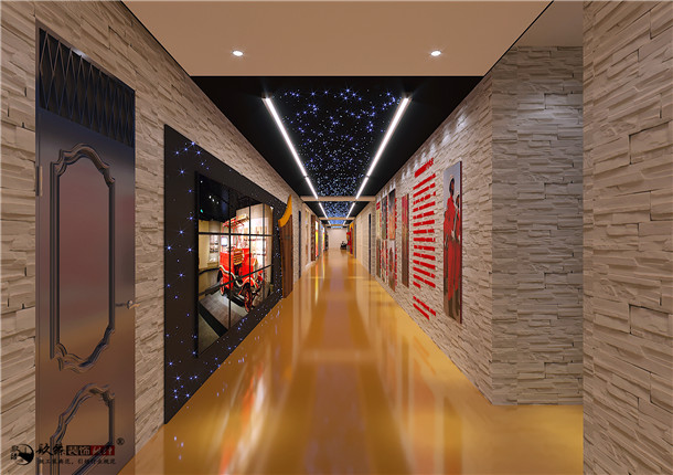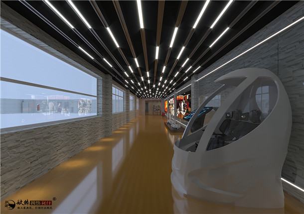 項目中,空間的主場是長廊,镹臻裝飾設計師在展示區(qū)采用了直線及燈光的表現(xiàn)手法充分利用墻面區(qū)域和頂面區(qū)域,展示區(qū)頂部設計一個星空頂,充分展現(xiàn)科技感,根據(jù)具體展示需要,結(jié)合圖文展板和實物進行展示,使觀者對消防內(nèi)容有直觀了解。