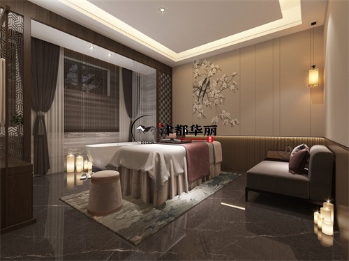 隨著人們健康意識提高、對生活質(zhì)量的追求,“足浴養(yǎng)生”成為了人們關(guān)注的熱點(diǎn)。設(shè)計(jì)不僅要提供怡人的環(huán)境,也肩負(fù)了打開市場局面、打響品牌的使命。今天分享的是足浴店設(shè)計(jì)裝修案例,中式裝修足浴店設(shè)計(jì)裝修面色彩明暗對比強(qiáng)烈,其中青石階、抱鼓石、影壁浮雕、仿古吊燈寧靜優(yōu)雅,花格實(shí)木格柵吊頂貴氣之余又染著自然的清新靈秀,在超凡脫俗之處,給人以的美感享受。副廳呈現(xiàn)出明凈空靈的清新美,利落的設(shè)計(jì)手法將傳統(tǒng)的中正、穩(wěn)重、經(jīng)典、高雅之韻,演繹成一種超乎于形的意境之美。包間的設(shè)計(jì),著重打造明廳暗室中的“暗”,營造出放松,安全的休息氛圍。足浴房間設(shè)計(jì)高貴時(shí)尚又賦有詩情畫意,用于娛樂之用,背景墻一副浩瀚壯闊的水墨梅花掛畫將悠閑養(yǎng)性、怡然自得的心境達(dá)超然之致。設(shè)計(jì)運(yùn)用別出心裁創(chuàng)造力,將整體景象的做到熟悉中有新意,協(xié)調(diào)中有變化,平淡中有味道的絕唱。